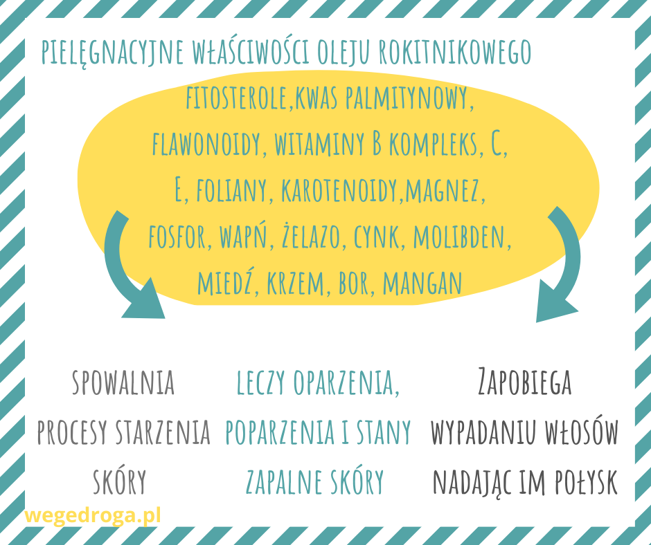 Ukrainki nie są w ciemię bite, słyszały o koniach, które miały piękną, błyszczącą sierść, a to za sprawą zjadanych liści rokitnika (łacińska nazwa Hippophae hamnoides oznacza: koń i błyszczeć). Olej wytłaczany jest z pomarańczowej pulpy owocowej, a skład oleju jest taki: